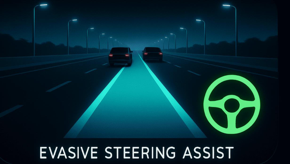 Evasive Steering Assist helps the driver steer around an obstacle when braking alone won’t prevent a collision. It provides additional steering torque for safe maneuvering.