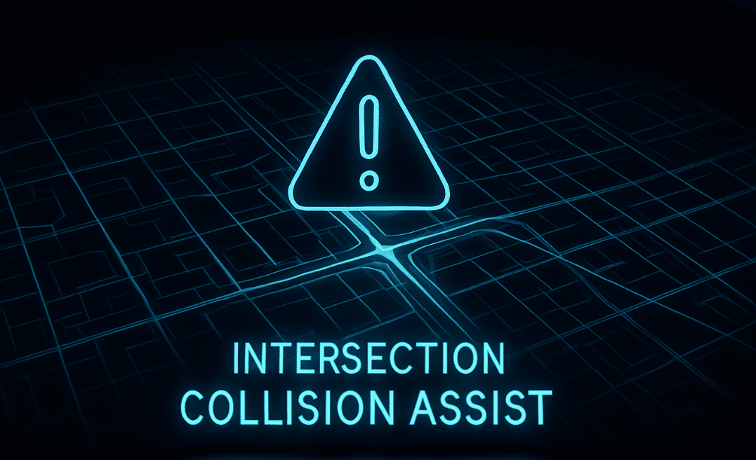 Intersection Collision Assist prevents accidents at junctions by monitoring cross-traffic. It detects vehicles approaching from the sides and warns the driver if it’s unsafe to cross or turn.