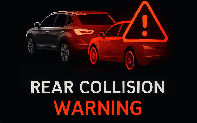 Rear Collision Warning alerts the driver when a vehicle behind is approaching too fast and a rear-end crash is likely. Using rear radar or cameras, it monitors vehicles coming from behind and provides timely warnings.