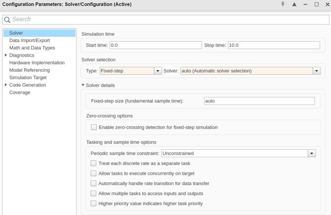 Task Synchronization: For multi-rate systems (e.g., models with components operating at different rates), ensure that the fixed-step solver step size accommodates the fastest rate as a common multiple of slower rates.
