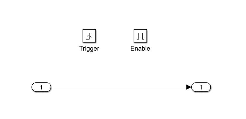 Enable Port: This port determines whether the subsystem is operational or not. Only when the enable signal is affirmative (non-zero) does the subsystem come to life. Regardless of the trigger signal, the subsystem stays inactive if the enable signal is 0 or negative.