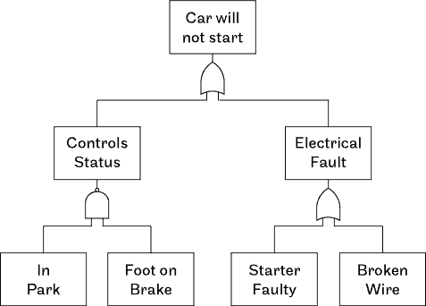 • Boolean logic is applied: If any of the failures occur, the system may fail.