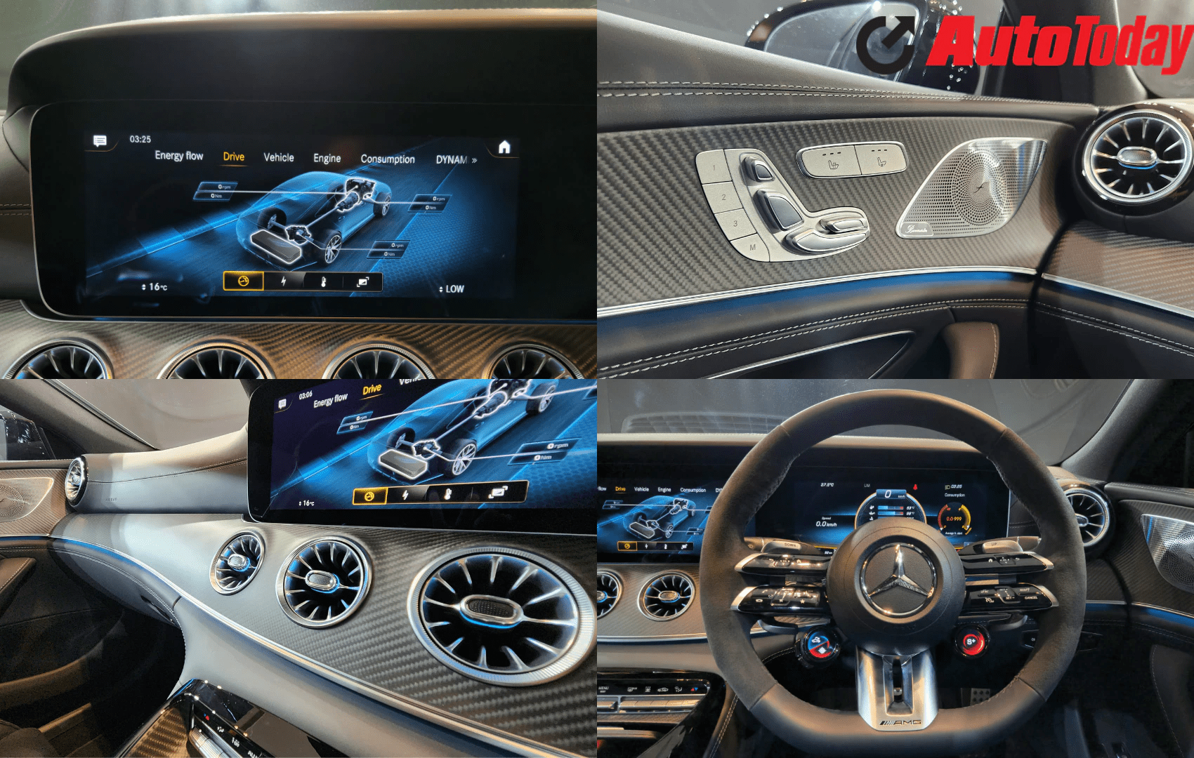 The 12.3-inch infotainment display and a completely digital instrument display are both part of the MBUX system. One may monitor the power, temperature, battery temperature, battery charge, powertrain output, and other data on both of these displays, which also have AMG-specific screens and hybrid-specific screens.