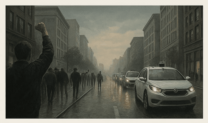 What happens to the people whose jobs are displaced by automation? Like a professional driver who suddenly sees a fleet of robotaxis replacing his livelihood. That kind of loss can breed anger, grief, and sometimes retaliation.